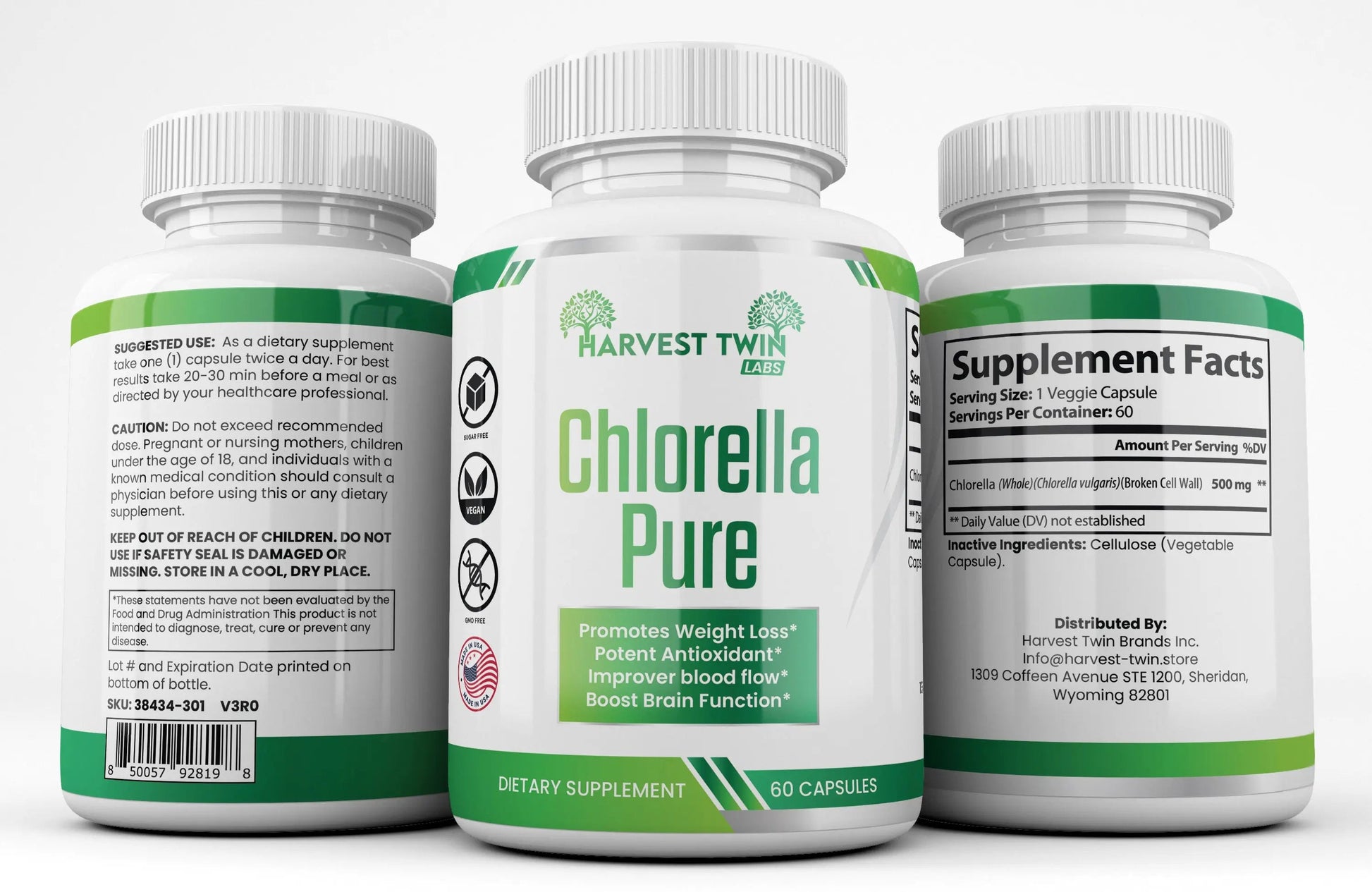 Harvest Twin Labs' Chlorella Pure is an effective dietary supplement formulated to promote weight loss, boost antioxidant activity, and improve blood flow. Derived from a single-celled freshwater algae, it's packed with essential vitamins, minerals and protein to support overall health and wellness.
